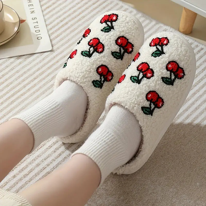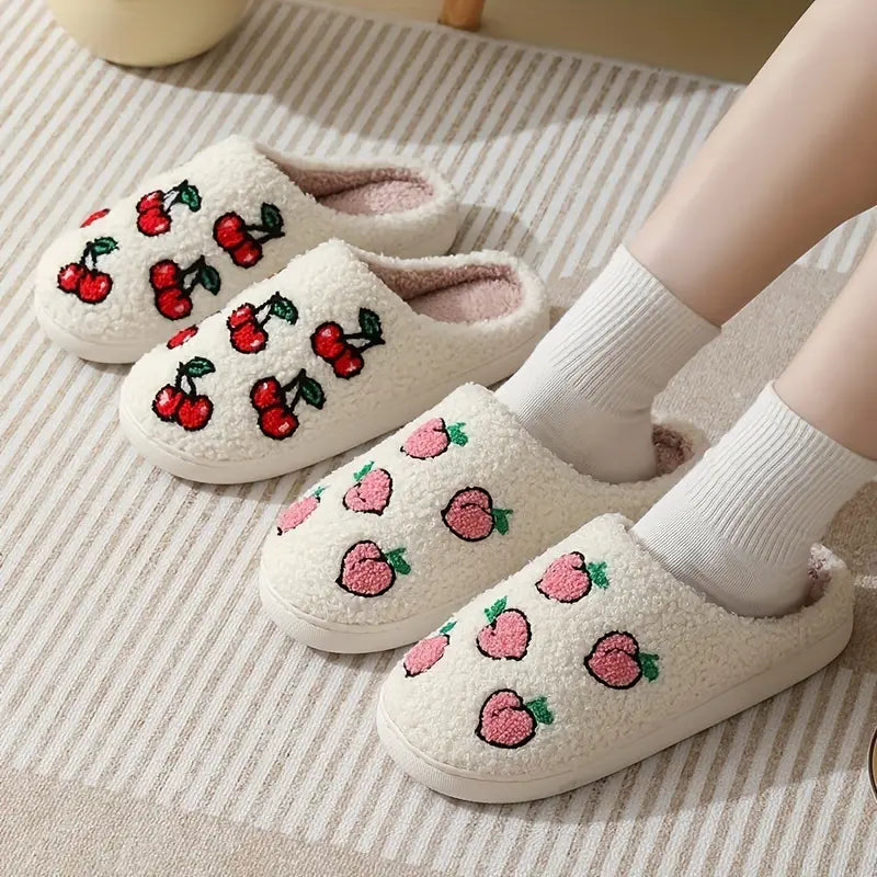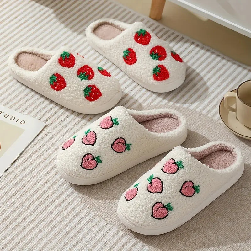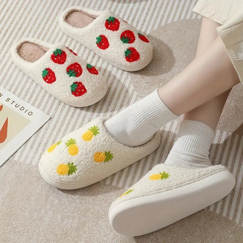 Fruit Print Closed Toe Plush Warm Home Slippers Shoes
