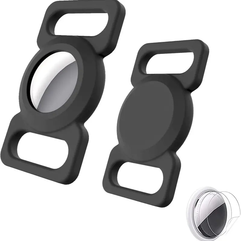 Keep Your Furry Friends Safe and Stylish with 2pcs Soft Silicone Air Tag Dog Collar Holder with Protective Film