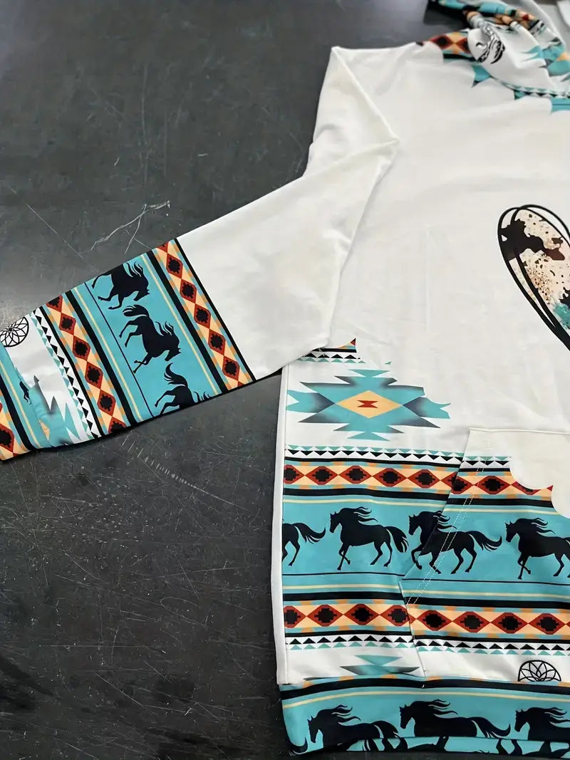 Plus Size Boho Sweatshirt, Women's Plus Geometric Print