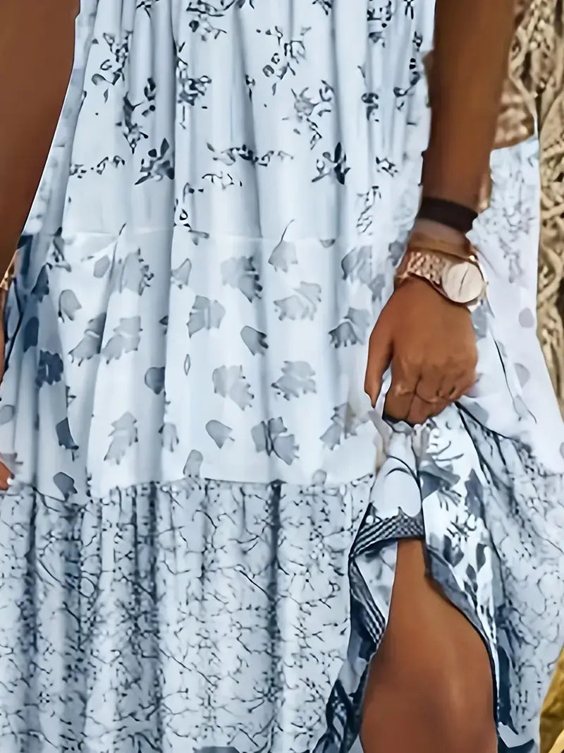 Plus Size Casual Dress, Women's Plus Colorblock Floral Print
