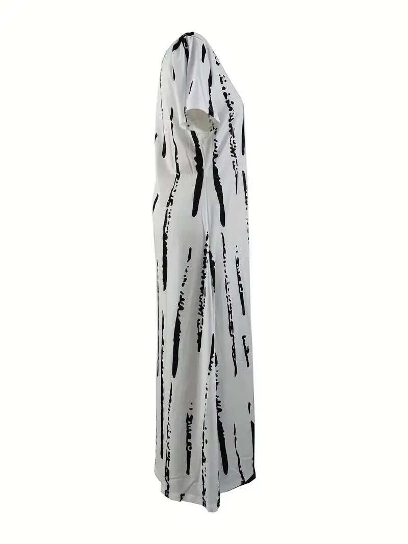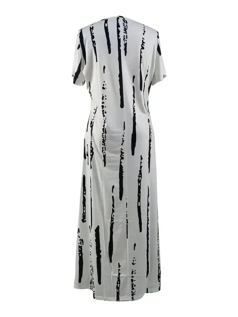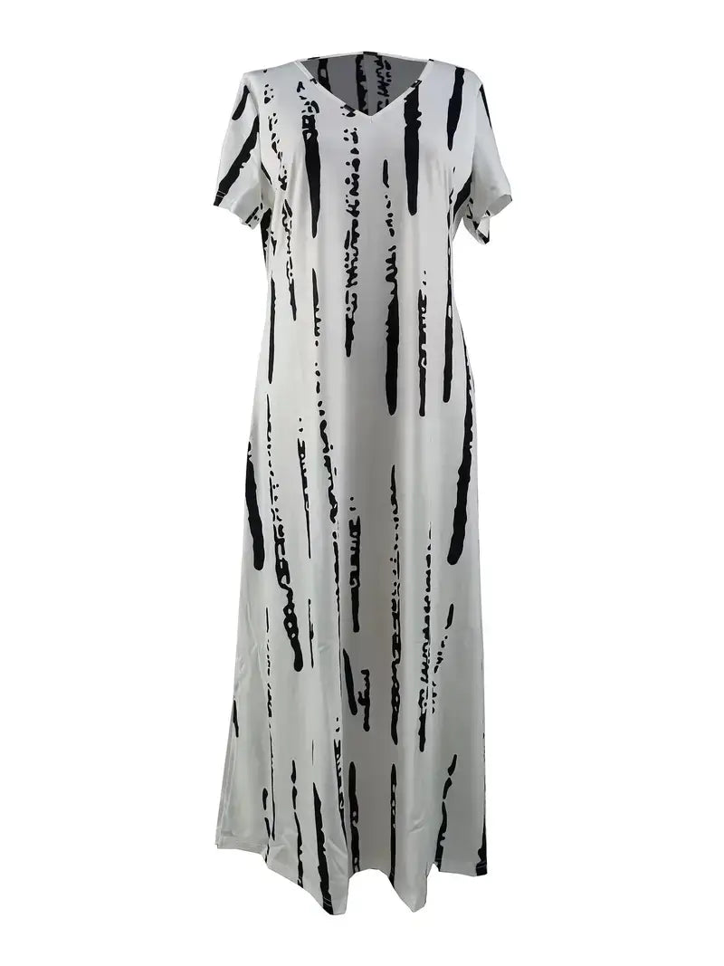 Plus Size Casual Dress, Women's Plus Graffiti Strip Print
