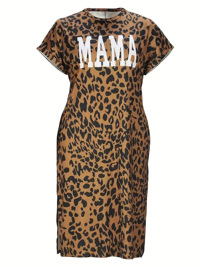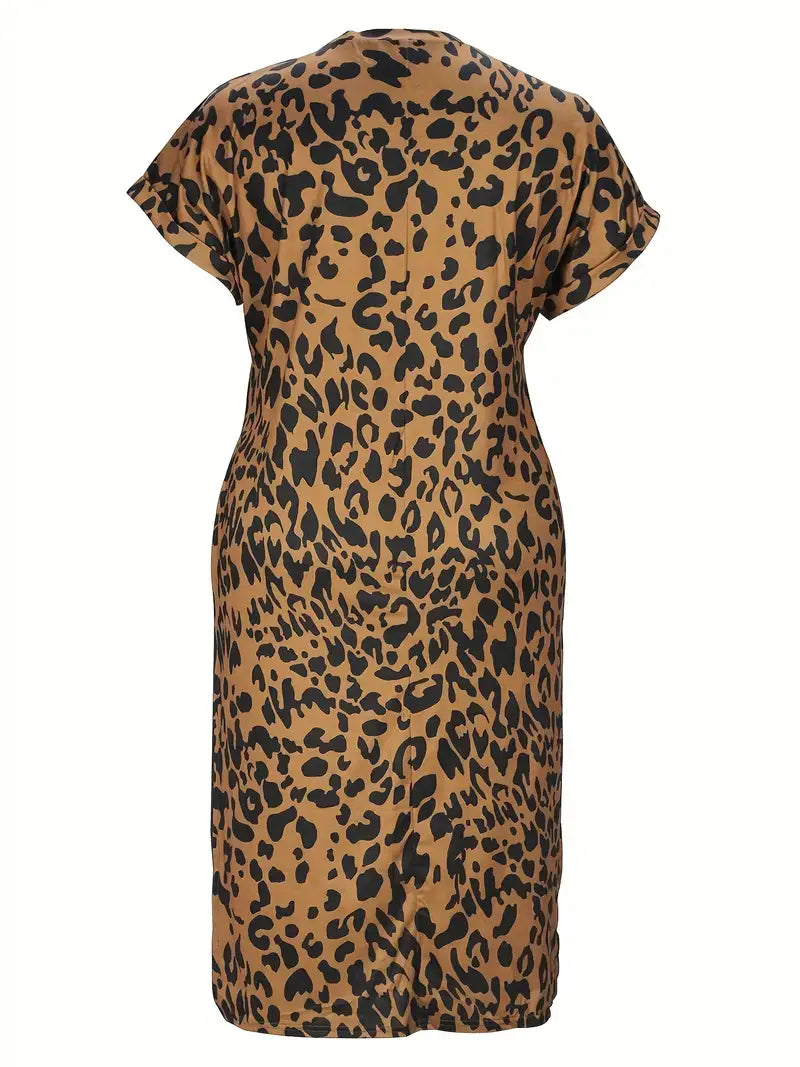Plus Size Casual Dress, Women's Plus Leopard & Letter Print