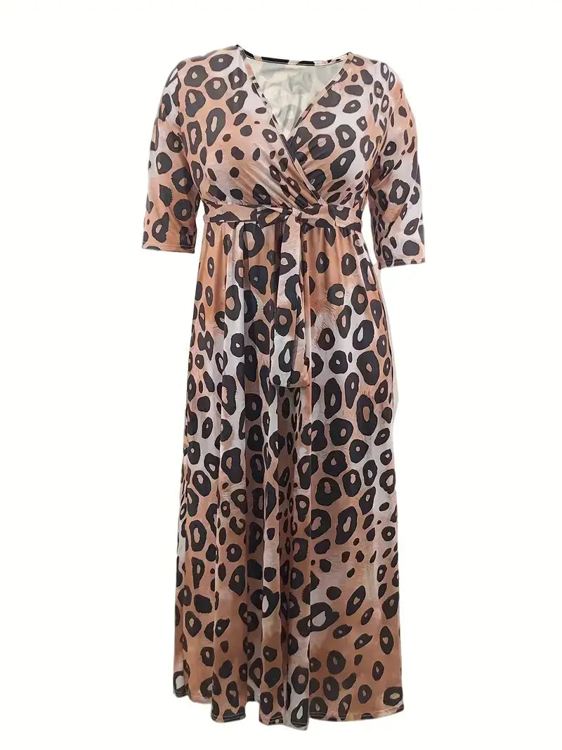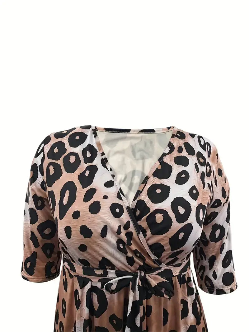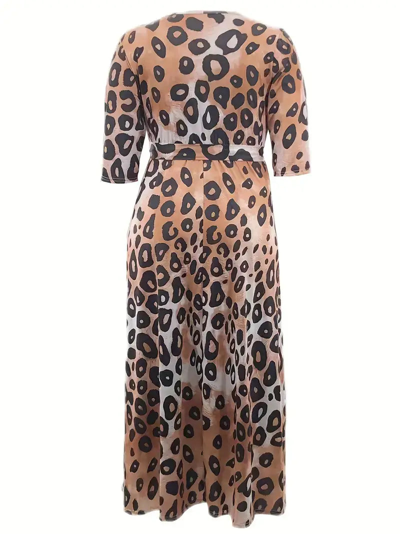 Plus Size Casual Dress, Women's Plus Leopard Print