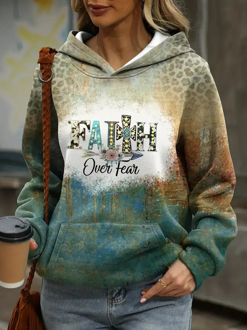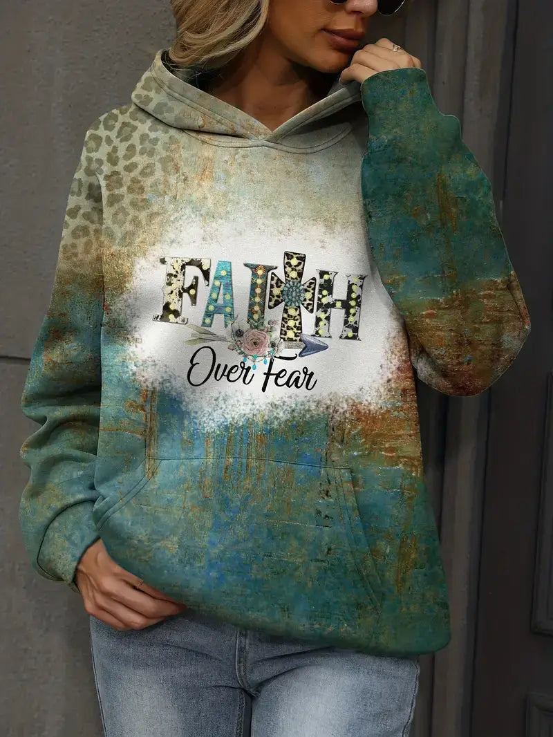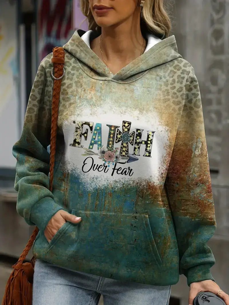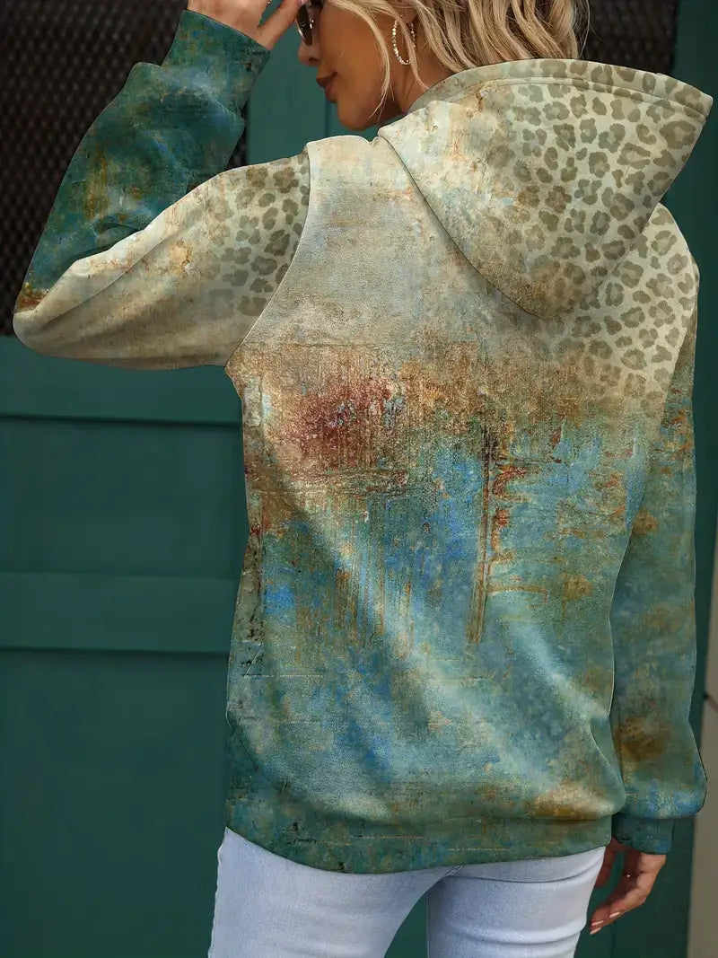 Plus Size Casual Hoodie,Women's Plus Leopard & Graphic Print