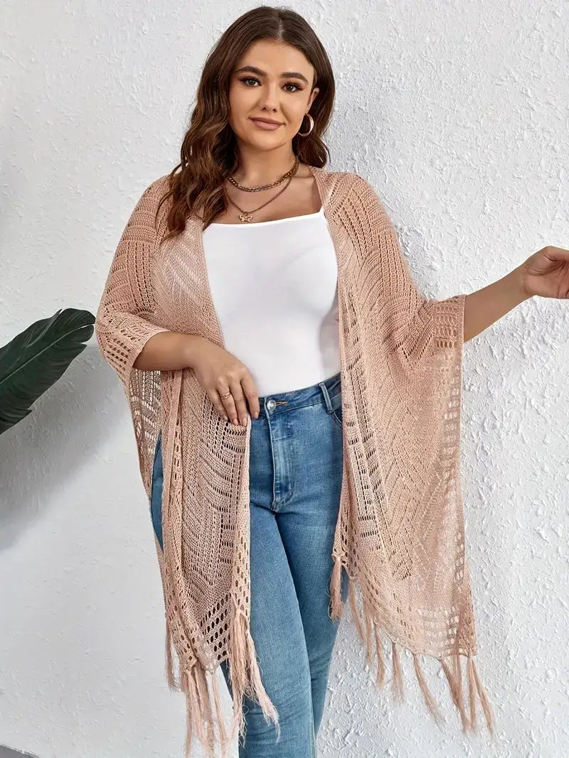 Plus Size Casual Sweater, Women's Plus Plain Cover Up