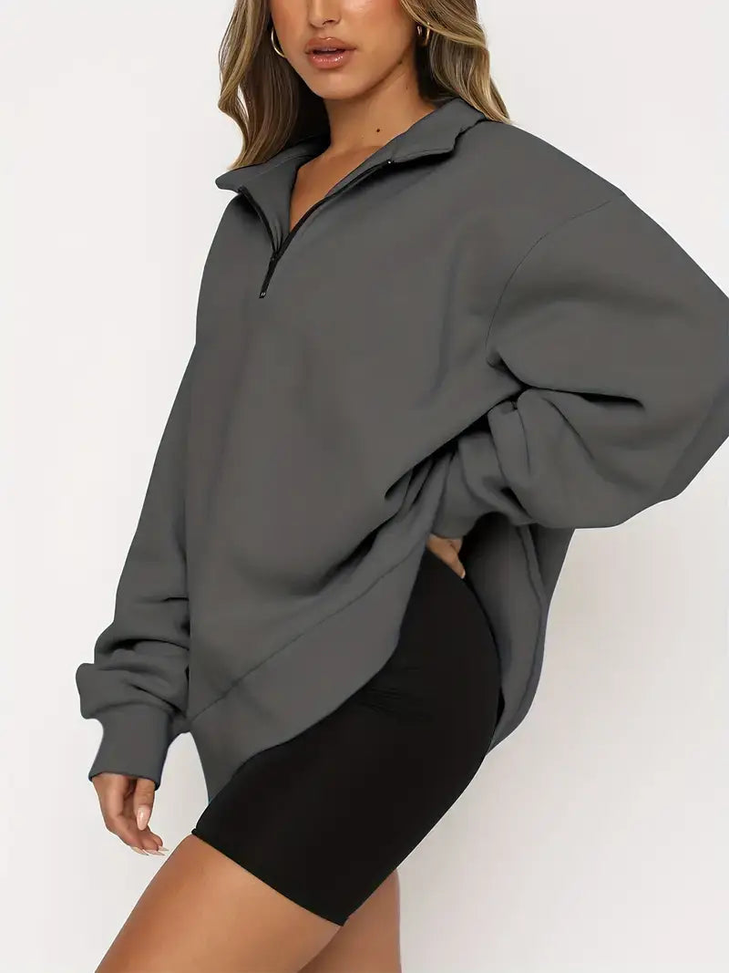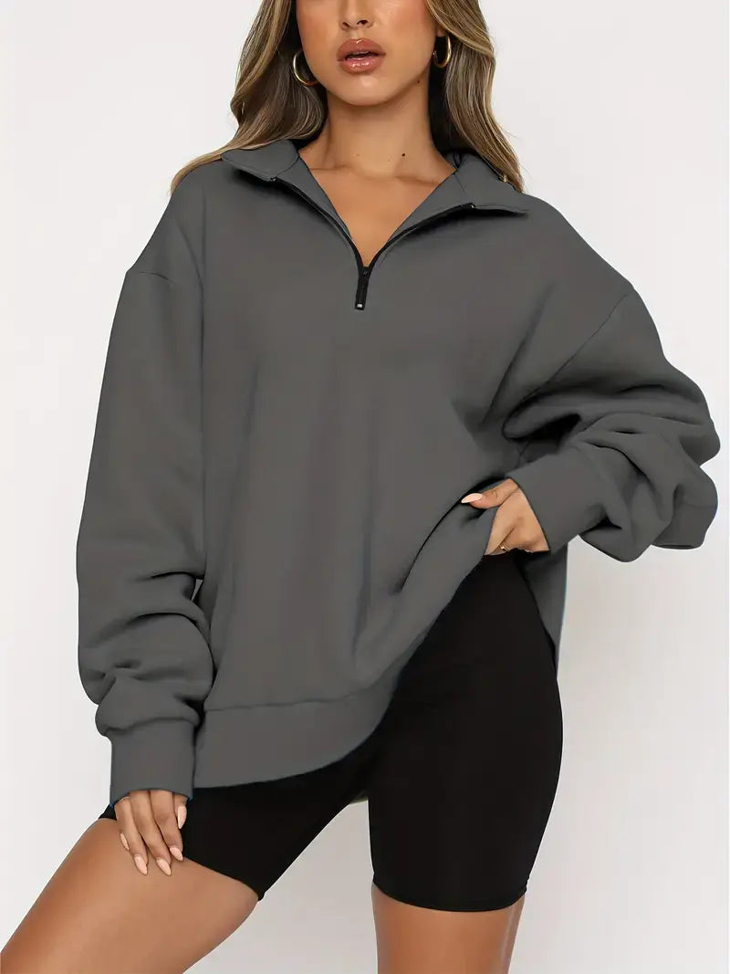 Plus Size Casual Sweatshirt, Women's Plus Plain Long Sleeve