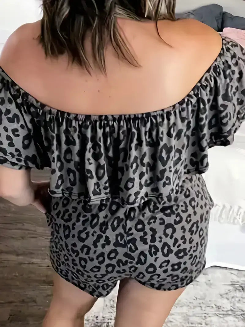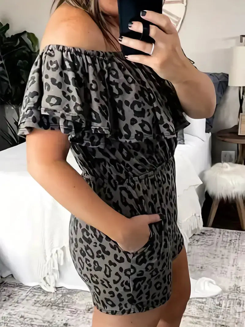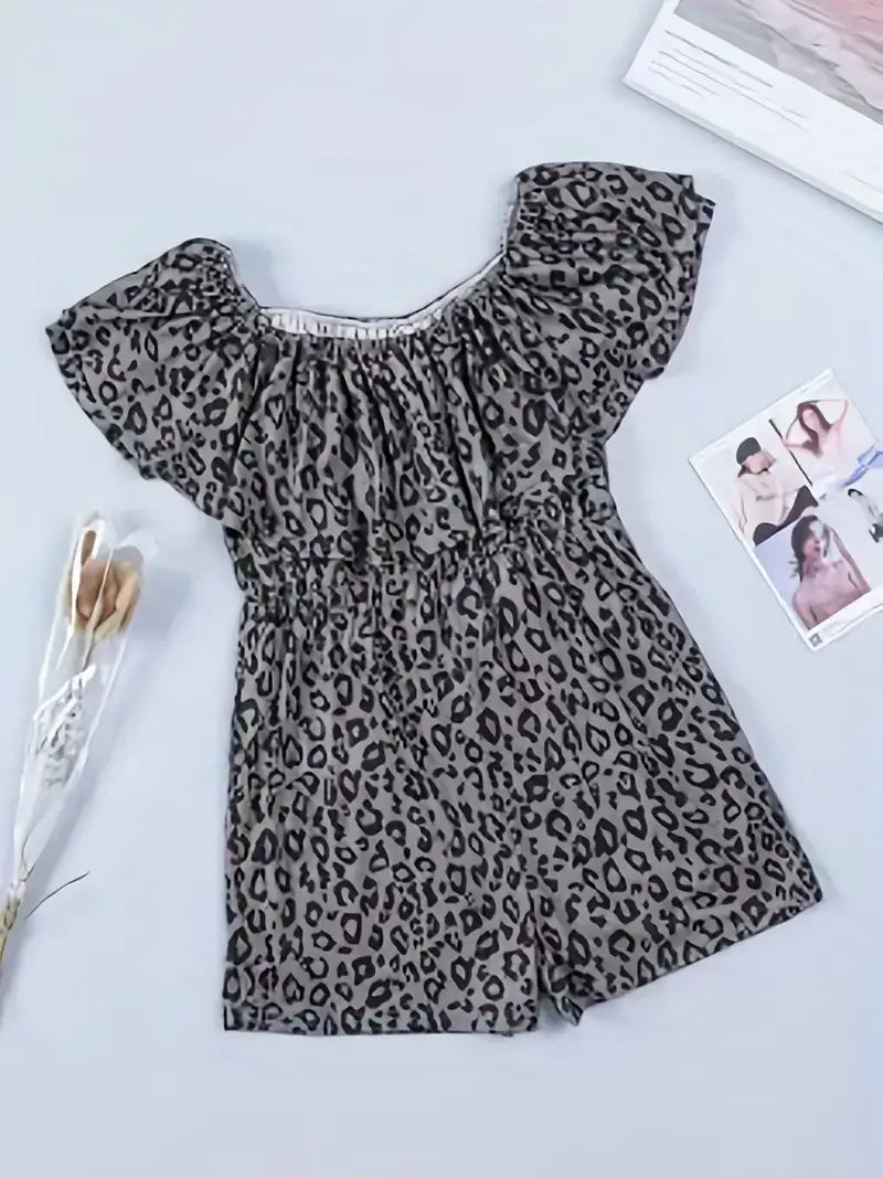 Plus Size Sexy Romper, Women's Plus Leopard Print Romper