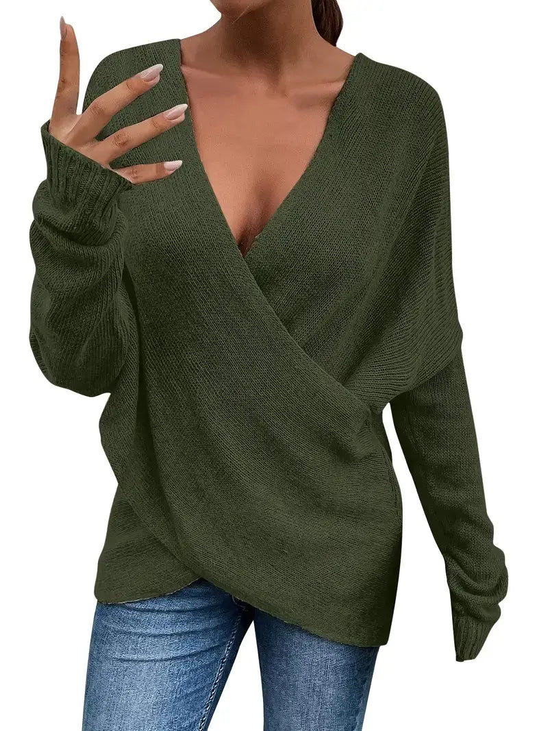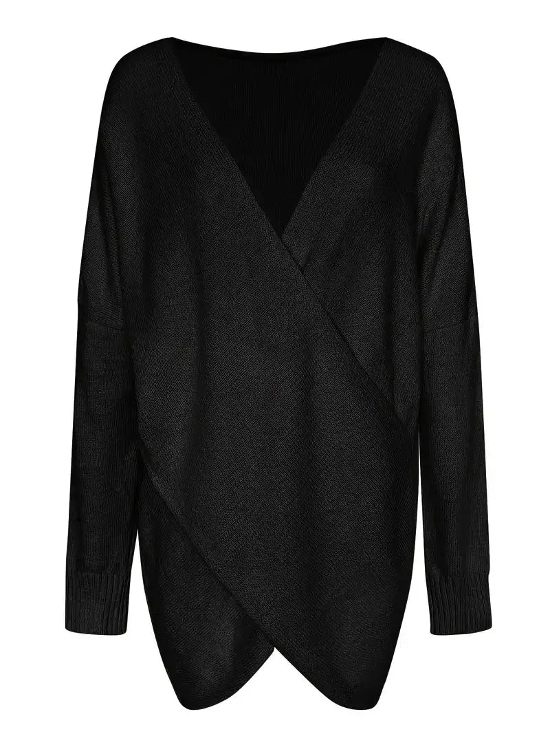 Plus Size Twist Front Deep V Neck Irregular Hem Knit Tops